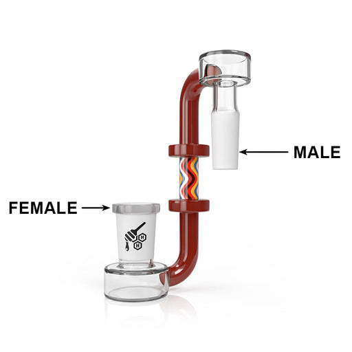 View full detailsSPECS Material - Glass Compatible with 14mm Female Rig Joint Compatible with 14mm Male Banger Joint Also Known As Drop Down Reclaim Catcher Recl...