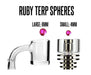 The large Ruby Spheres are designed for MiniNail Quartz E-Bangers and the small Ruby Spheres are designed for our Quartz Hybrid Nail. The spheres allow for kinetic energy to help disperse the concentrate for better function and flavor.