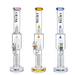 The tall straight tube, stacked diffusion chambers, and colored rocket-style accents give the bong a futuristic laboratory-inspired look. The transparent body highlights the internal filtration structure while keeping the overall design clean and refined.
