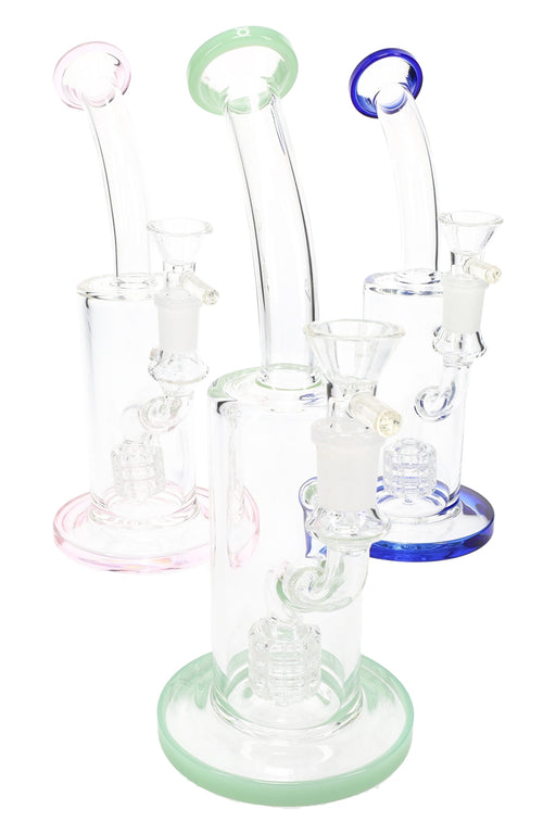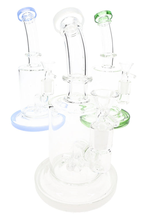 View full details7.5 inches tall Rig style water pipe Showerhead percolator Angled mouthpiece Bright ombre hues Borosilicate glass SeshGear logo Includes matching ...